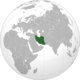 En ambos bordes interiores de los colores verde y rojo de las franjas horizontales de la bandera, hay escrito en blanco con escritura cúfica y repetida 11 veces,